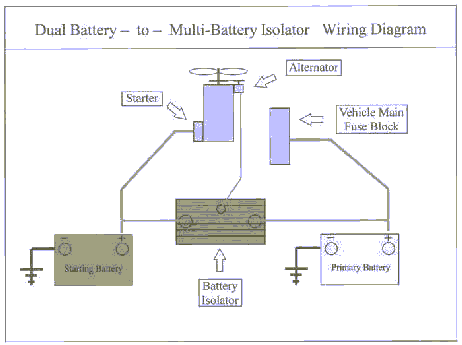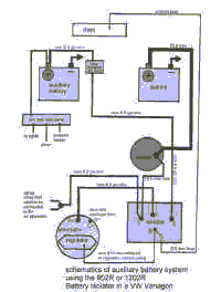 Relay versus Isolator? Some call the dual battery relay a "battery-isolator-relay? Don't let that confuse you. The relay is not a "battery isolator". A dual-battery-relay (see "relay" page) is a simple switch, disconnecting the two batteries, when the engine is turned off. But the moment the relay reconnects the batteries, the drained battery robs power from the starting battery. This sudden transfer of current from one battery to another can damage batteries, and shorten their life. That is one of the reasons bigger mobile homes, trucks etc. mostly use "battery-isolators?for multi-battery installations. You can also use this isolator technology in a vanagon to keep two batteries charged.